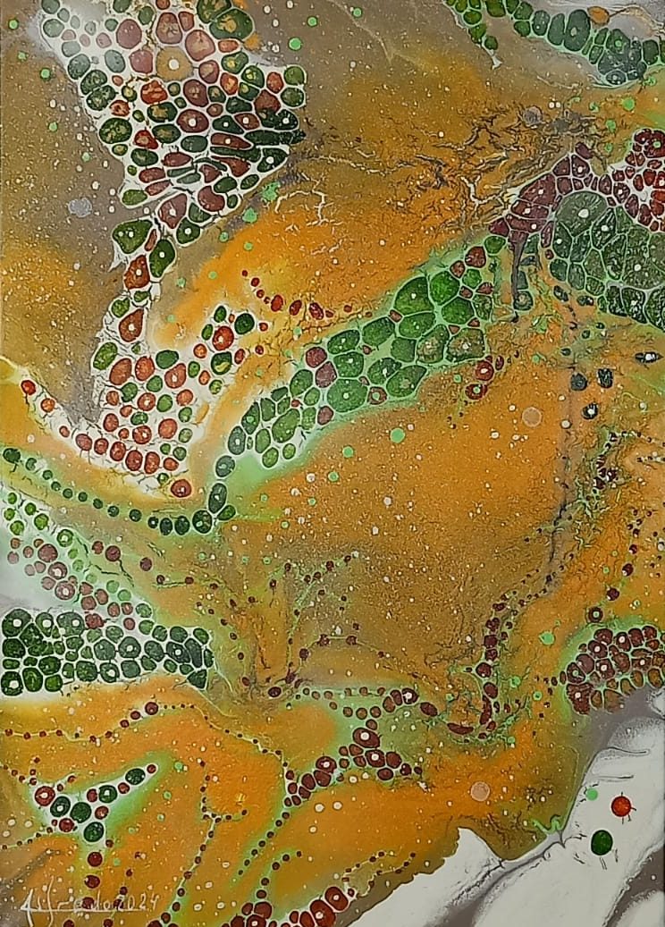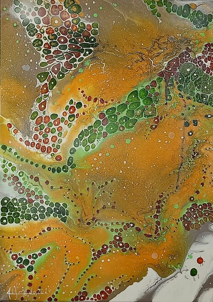 Esta colección está compuesta por cuatro cuadros inspirados en la naturaleza. A través de una paleta vibrante de naranjas intensos, amarillos cálidos y verdes frescos, cada obra captura la esencia viva del entorno natural. Luz, vida y movimiento se entrelazan en una danza cromática que invita a contemplar la fuerza serena de la tierra.
